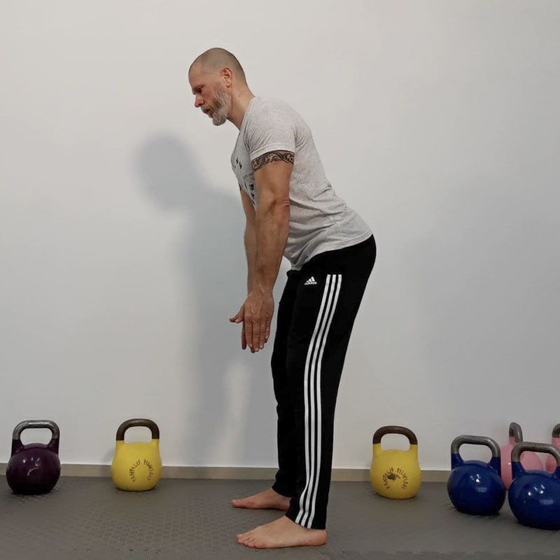 Drilling the movement with pauses, i.e. breaking the exercise movement down into bits and replicating those without any weight. An example of the hip hinge swing follows.
